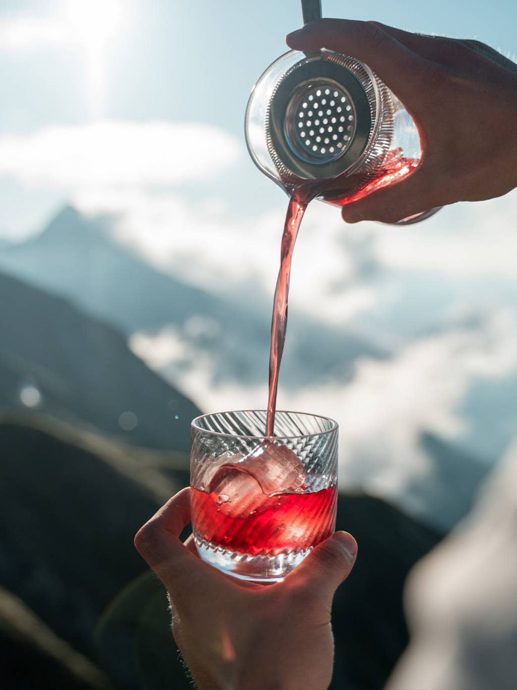 APERITIF und ALPEN wird zu ALPERITIF® und damit zu einem neuen, eigenständigen Getränk. Der Alperitif Gin Likör überzeugt durch seine raffinierte Komposition aus alpinen Aromen. Er verführt mit seiner warmen rubinroten Farbe und einem einzigartigen fruchtig herben Geschmacksbild, das er dank der 30 erlesenen alpinen Heilkräuter, Beeren und Wurzeln erhält. Die Beigabe von Alperitif Alpine Gin verdichtet die alpinen Aromen und macht ihn zu einem vollmundigen, wohltuenden Getränk.