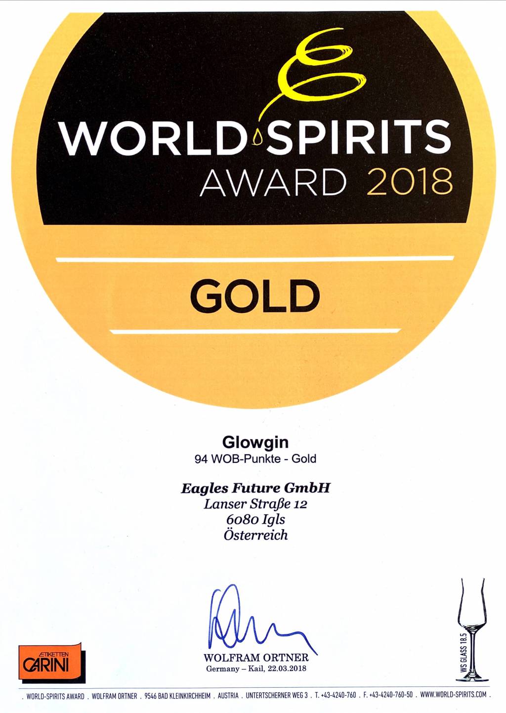 Im Laufe der vergangenen Jahre konnte unser Alperitif® GLOWGIN bei diversen internationalen Competition's überzeugen.