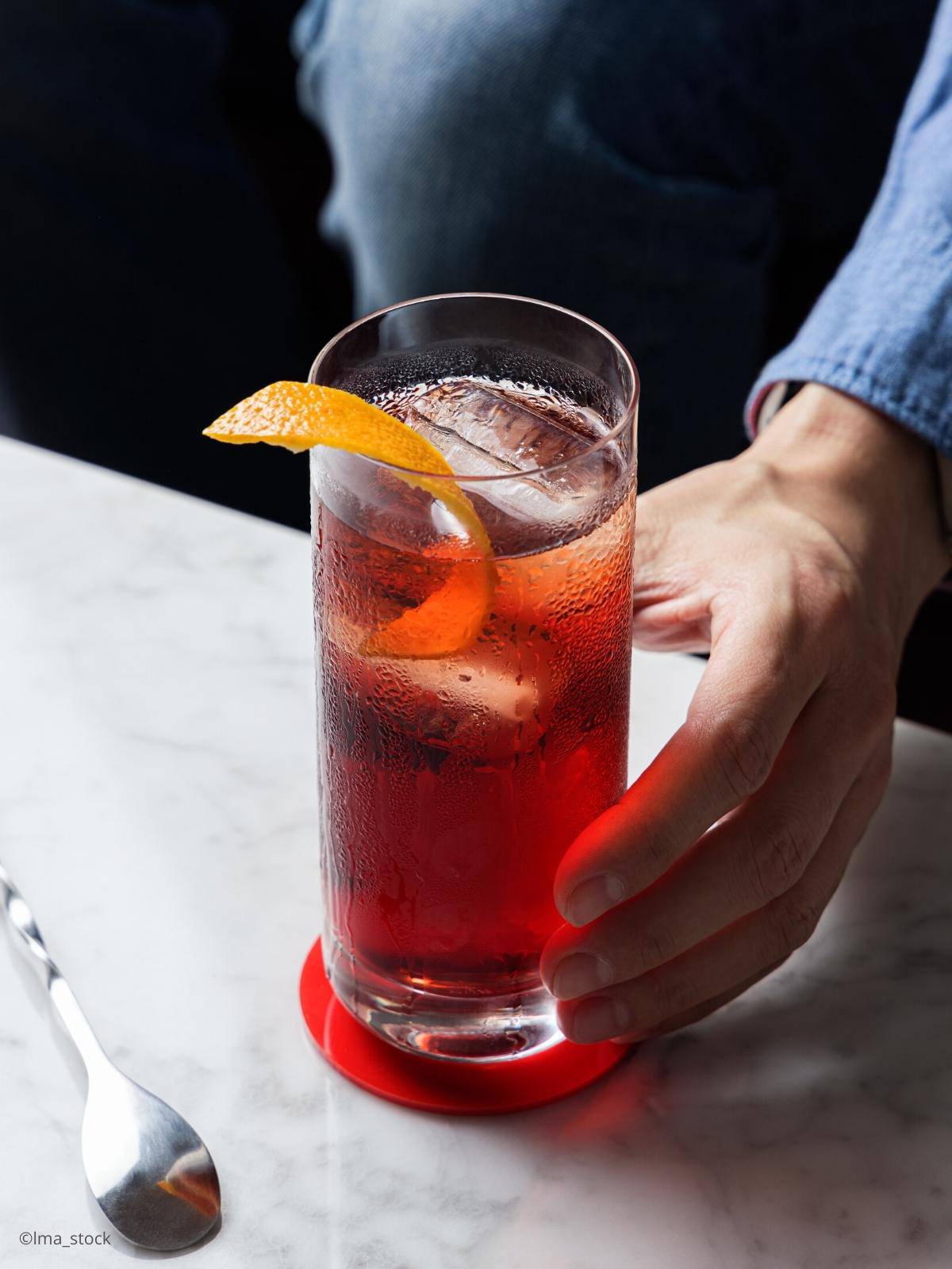 The fruity bitter notes and aromatic character of Alperitif® make it a very versatile base spirit, especially in combination with fillers. The Alperitif - soda has a comparatively low alcohol content and is tangy as well as fizzy due to the soda water. As an alternative to the lemon zest, a slice of lemon can also be used.