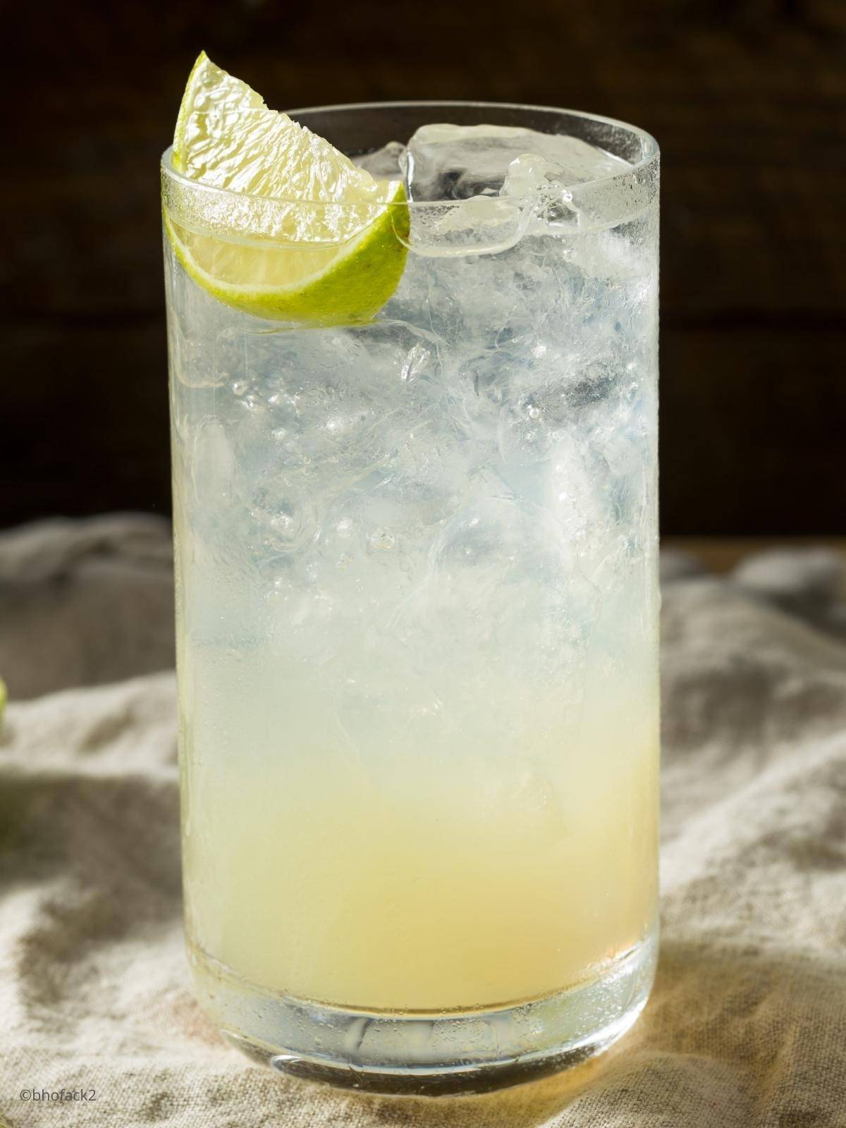 Pour all ingredients over ice (4 to 5 cubes) into a highball glass and mix everything together. Garnish your drink with a ginger slice and serve. Cheers, Julius