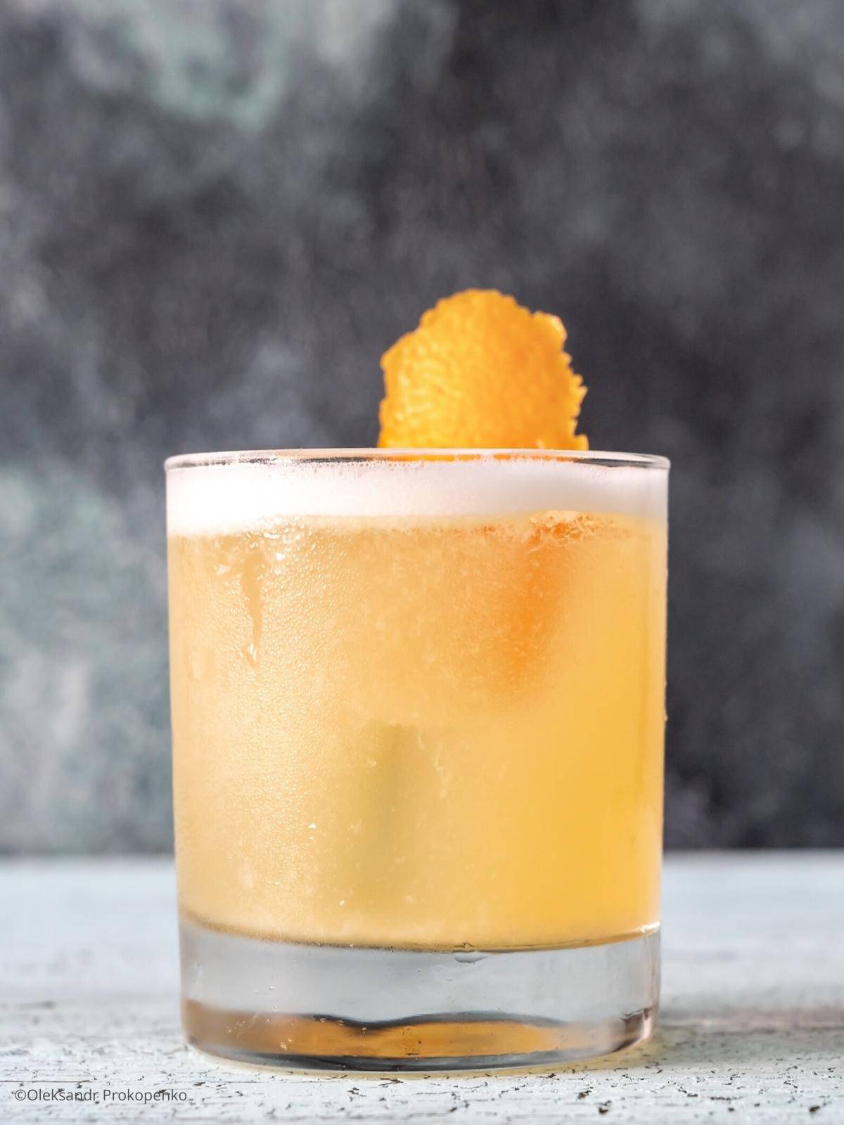 Add all ingredients to a mixing glass filled with ice and stir until well-chilled. Strain into a rocks glass over a large ice cube and twist a lemon peel over the surface. Garnish with a lemon peel. Cheers, Julius